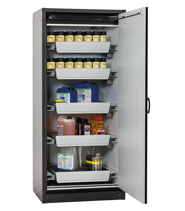 Bitte beachten Sie die jeweils gültigen, nationalen Regeln und Vorschriften zur Lagerung von Gefahrstoffen bei der Konfiguration Ihres Produktes. Sollten Sie unsicher sein, helfen Ihnen die asecos Experten gerne weiter.