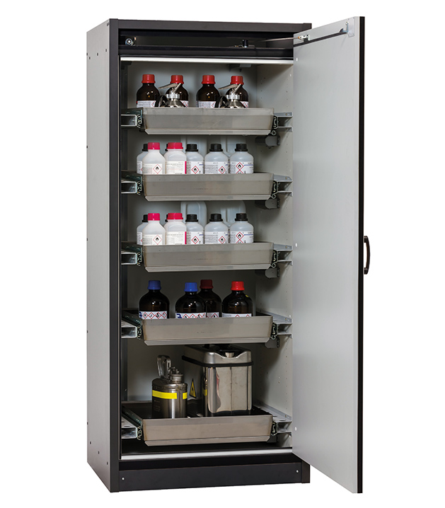 Bitte beachten Sie die jeweils gültigen, nationalen Regeln und Vorschriften zur Lagerung von Gefahrstoffen bei der Konfiguration Ihres Produktes. Sollten Sie unsicher sein, helfen Ihnen die asecos Experten gerne weiter.