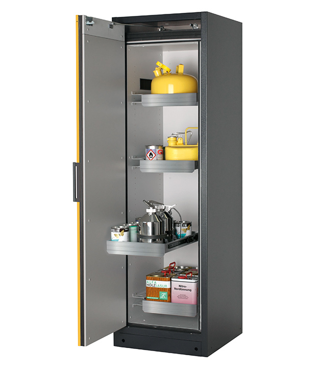 Bitte beachten Sie die jeweils gültigen, nationalen Regeln und Vorschriften zur Lagerung von Gefahrstoffen bei der Konfiguration Ihres Produktes. Sollten Sie unsicher sein, helfen Ihnen die asecos Experten gerne weiter.