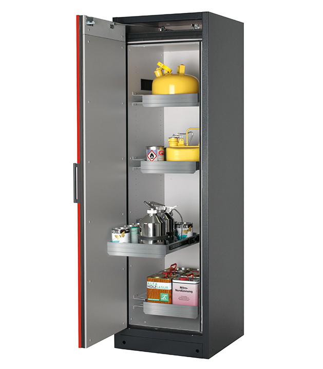 Bitte beachten Sie die jeweils gültigen, nationalen Regeln und Vorschriften zur Lagerung von Gefahrstoffen bei der Konfiguration Ihres Produktes. Sollten Sie unsicher sein, helfen Ihnen die asecos Experten gerne weiter.