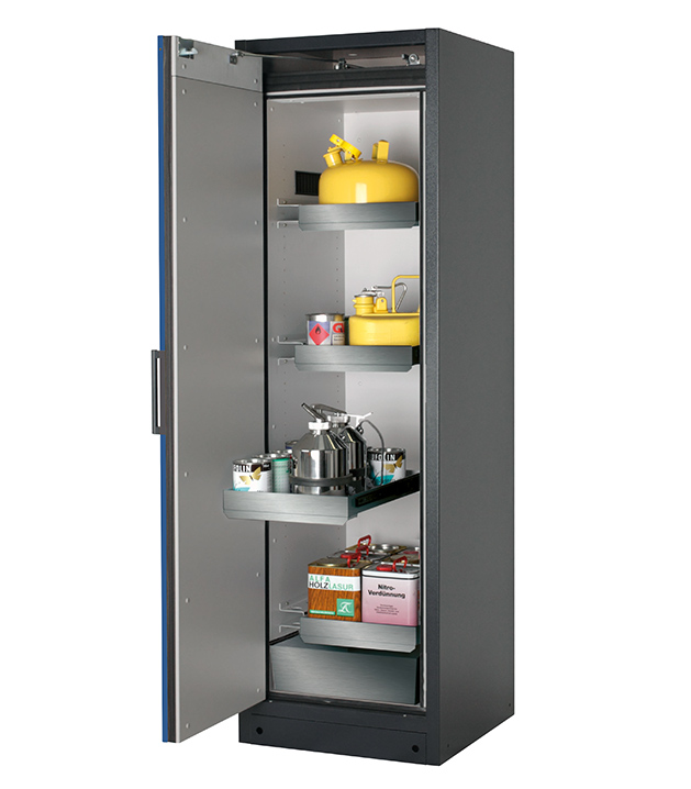 Bitte beachten Sie die jeweils gültigen, nationalen Regeln und Vorschriften zur Lagerung von Gefahrstoffen bei der Konfiguration Ihres Produktes. Sollten Sie unsicher sein, helfen Ihnen die asecos Experten gerne weiter.