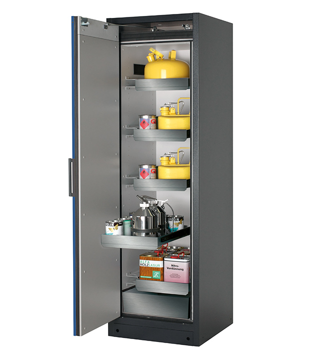 Bitte beachten Sie die jeweils gültigen, nationalen Regeln und Vorschriften zur Lagerung von Gefahrstoffen bei der Konfiguration Ihres Produktes. Sollten Sie unsicher sein, helfen Ihnen die asecos Experten gerne weiter.