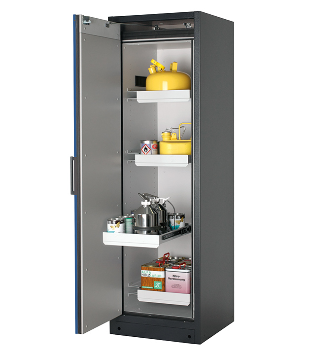 Bitte beachten Sie die jeweils gültigen, nationalen Regeln und Vorschriften zur Lagerung von Gefahrstoffen bei der Konfiguration Ihres Produktes. Sollten Sie unsicher sein, helfen Ihnen die asecos Experten gerne weiter.