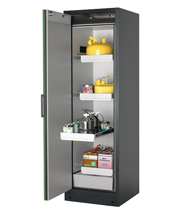 Bitte beachten Sie die jeweils gültigen, nationalen Regeln und Vorschriften zur Lagerung von Gefahrstoffen bei der Konfiguration Ihres Produktes. Sollten Sie unsicher sein, helfen Ihnen die asecos Experten gerne weiter.