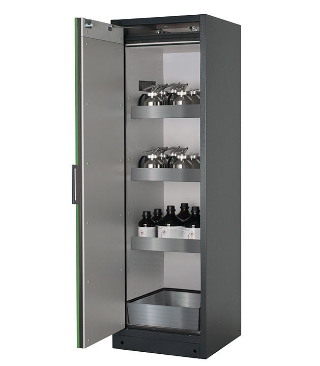 Bitte beachten Sie die jeweils gültigen, nationalen Regeln und Vorschriften zur Lagerung von Gefahrstoffen bei der Konfiguration Ihres Produktes. Sollten Sie unsicher sein, helfen Ihnen die asecos Experten gerne weiter.
