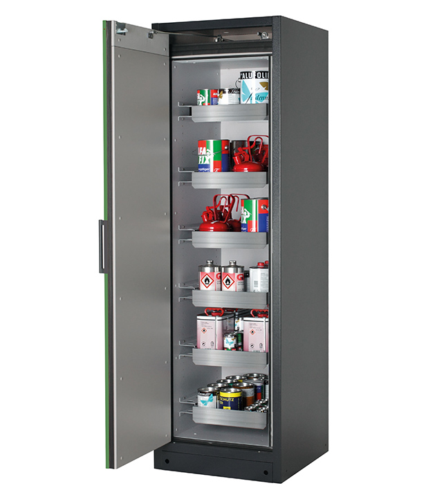 Bitte beachten Sie die jeweils gültigen, nationalen Regeln und Vorschriften zur Lagerung von Gefahrstoffen bei der Konfiguration Ihres Produktes. Sollten Sie unsicher sein, helfen Ihnen die asecos Experten gerne weiter.
