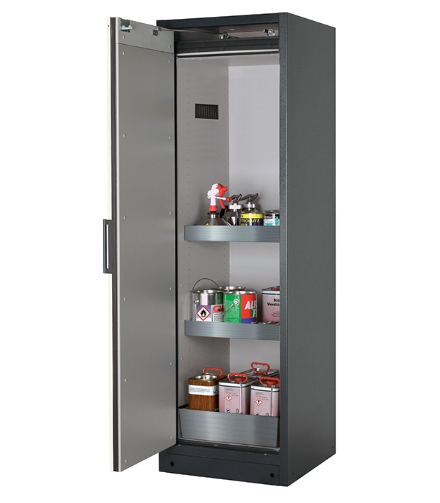 Bitte beachten Sie die jeweils gültigen, nationalen Regeln und Vorschriften zur Lagerung von Gefahrstoffen bei der Konfiguration Ihres Produktes. Sollten Sie unsicher sein, helfen Ihnen die asecos Experten gerne weiter.