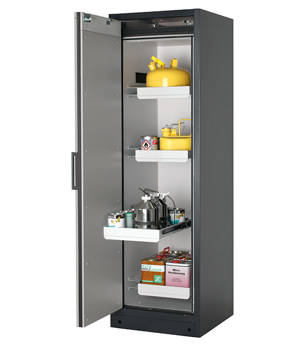 Bitte beachten Sie die jeweils gültigen, nationalen Regeln und Vorschriften zur Lagerung von Gefahrstoffen bei der Konfiguration Ihres Produktes. Sollten Sie unsicher sein, helfen Ihnen die asecos Experten gerne weiter.