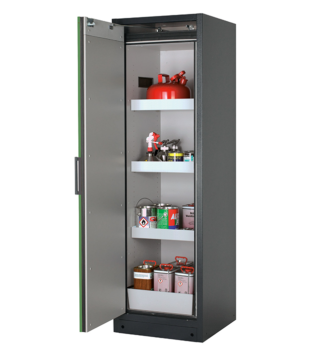Bitte beachten Sie die jeweils gültigen, nationalen Regeln und Vorschriften zur Lagerung von Gefahrstoffen bei der Konfiguration Ihres Produktes. Sollten Sie unsicher sein, helfen Ihnen die asecos Experten gerne weiter.