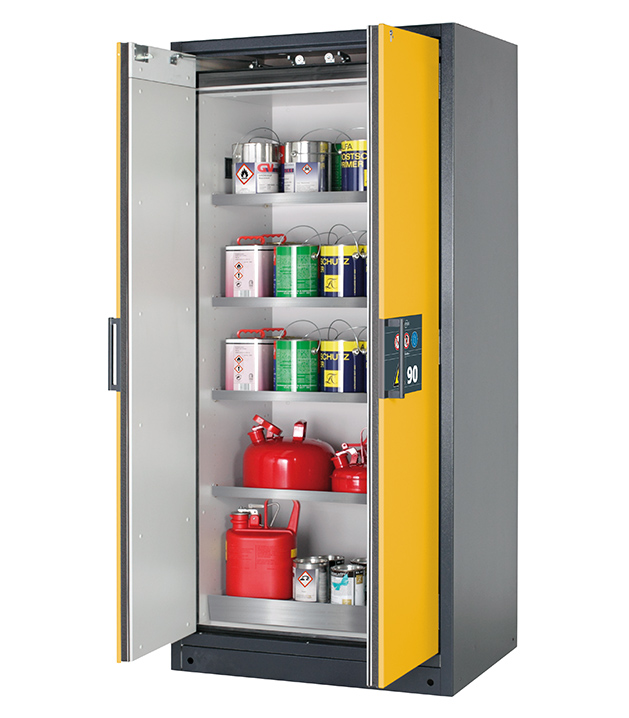 Bitte beachten Sie die jeweils gültigen, nationalen Regeln und Vorschriften zur Lagerung von Gefahrstoffen bei der Konfiguration Ihres Produktes. Sollten Sie unsicher sein, helfen Ihnen die asecos Experten gerne weiter.