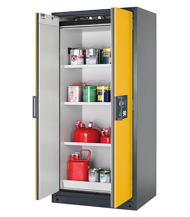 Bitte beachten Sie die jeweils gültigen, nationalen Regeln und Vorschriften zur Lagerung von Gefahrstoffen bei der Konfiguration Ihres Produktes. Sollten Sie unsicher sein, helfen Ihnen die asecos Experten gerne weiter.