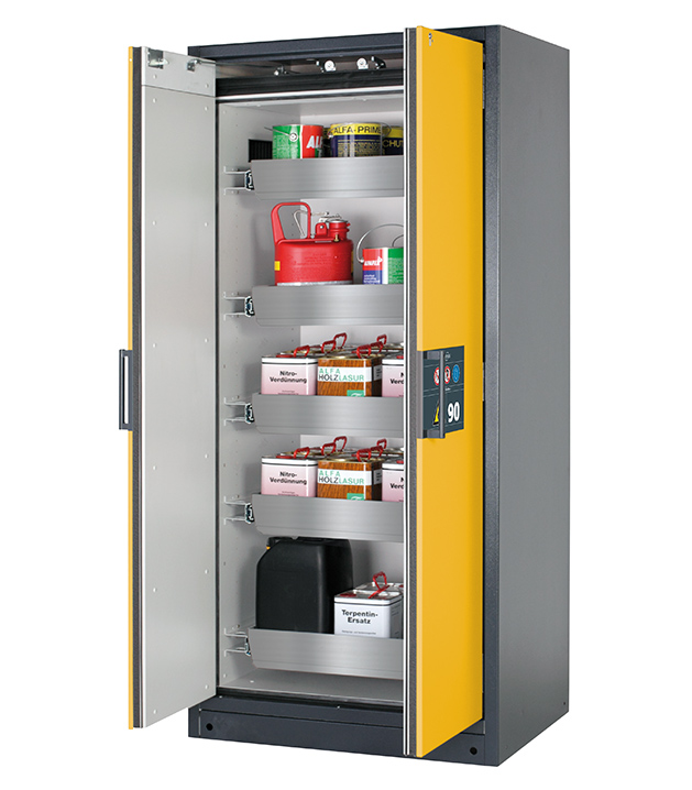 Bitte beachten Sie die jeweils gültigen, nationalen Regeln und Vorschriften zur Lagerung von Gefahrstoffen bei der Konfiguration Ihres Produktes. Sollten Sie unsicher sein, helfen Ihnen die asecos Experten gerne weiter.