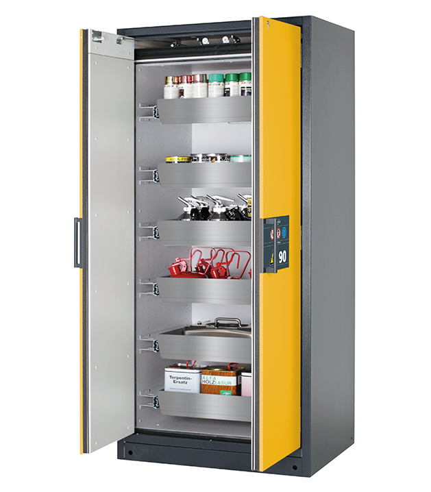 Bitte beachten Sie die jeweils gültigen, nationalen Regeln und Vorschriften zur Lagerung von Gefahrstoffen bei der Konfiguration Ihres Produktes. Sollten Sie unsicher sein, helfen Ihnen die asecos Experten gerne weiter.