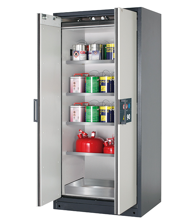 Bitte beachten Sie die jeweils gültigen, nationalen Regeln und Vorschriften zur Lagerung von Gefahrstoffen bei der Konfiguration Ihres Produktes. Sollten Sie unsicher sein, helfen Ihnen die asecos Experten gerne weiter.