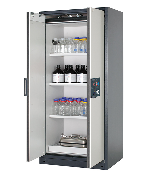 Bitte beachten Sie die jeweils gültigen, nationalen Regeln und Vorschriften zur Lagerung von Gefahrstoffen bei der Konfiguration Ihres Produktes. Sollten Sie unsicher sein, helfen Ihnen die asecos Experten gerne weiter.