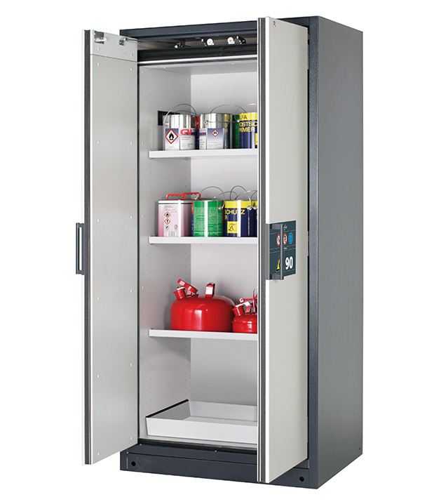 Bitte beachten Sie die jeweils gültigen, nationalen Regeln und Vorschriften zur Lagerung von Gefahrstoffen bei der Konfiguration Ihres Produktes. Sollten Sie unsicher sein, helfen Ihnen die asecos Experten gerne weiter.