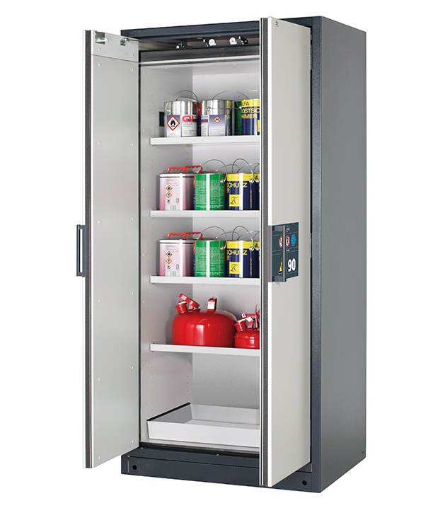 Bitte beachten Sie die jeweils gültigen, nationalen Regeln und Vorschriften zur Lagerung von Gefahrstoffen bei der Konfiguration Ihres Produktes. Sollten Sie unsicher sein, helfen Ihnen die asecos Experten gerne weiter.