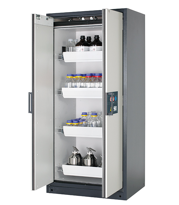 Bitte beachten Sie die jeweils gültigen, nationalen Regeln und Vorschriften zur Lagerung von Gefahrstoffen bei der Konfiguration Ihres Produktes. Sollten Sie unsicher sein, helfen Ihnen die asecos Experten gerne weiter.