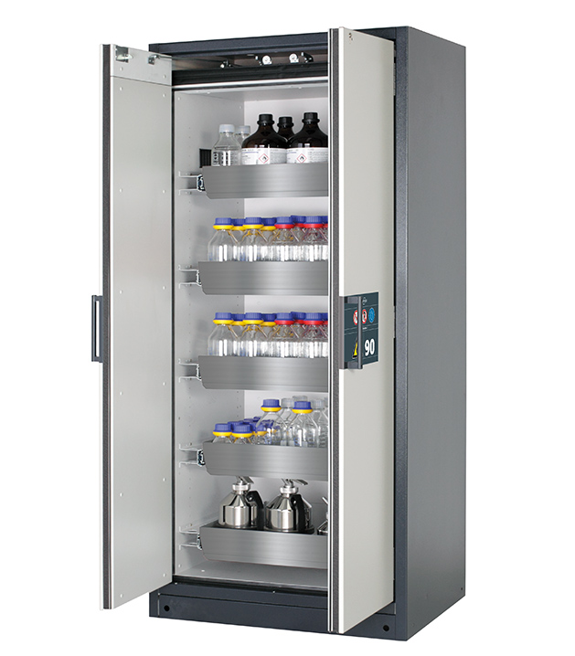 Bitte beachten Sie die jeweils gültigen, nationalen Regeln und Vorschriften zur Lagerung von Gefahrstoffen bei der Konfiguration Ihres Produktes. Sollten Sie unsicher sein, helfen Ihnen die asecos Experten gerne weiter.
