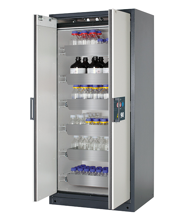 Bitte beachten Sie die jeweils gültigen, nationalen Regeln und Vorschriften zur Lagerung von Gefahrstoffen bei der Konfiguration Ihres Produktes. Sollten Sie unsicher sein, helfen Ihnen die asecos Experten gerne weiter.