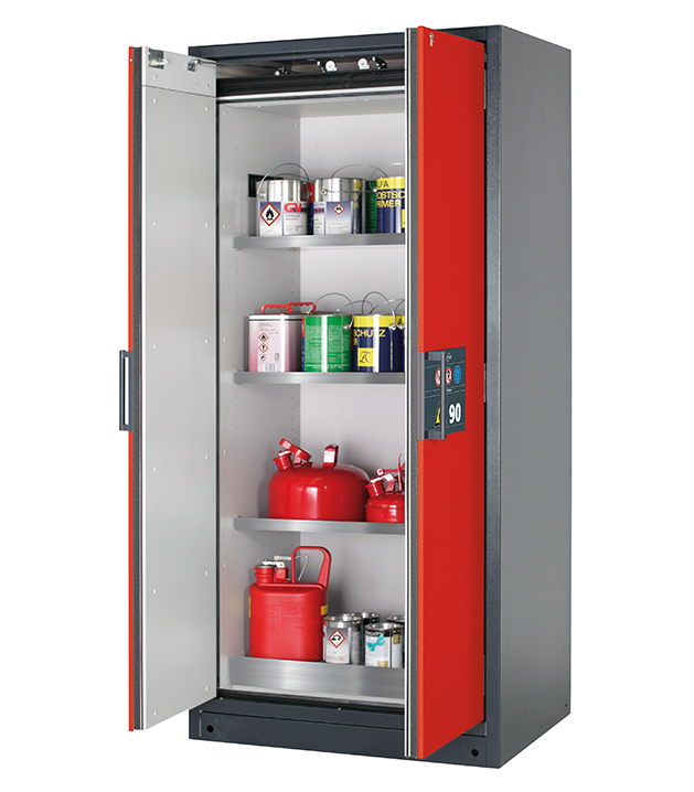 Bitte beachten Sie die jeweils gültigen, nationalen Regeln und Vorschriften zur Lagerung von Gefahrstoffen bei der Konfiguration Ihres Produktes. Sollten Sie unsicher sein, helfen Ihnen die asecos Experten gerne weiter.
