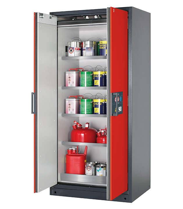 Bitte beachten Sie die jeweils gültigen, nationalen Regeln und Vorschriften zur Lagerung von Gefahrstoffen bei der Konfiguration Ihres Produktes. Sollten Sie unsicher sein, helfen Ihnen die asecos Experten gerne weiter.