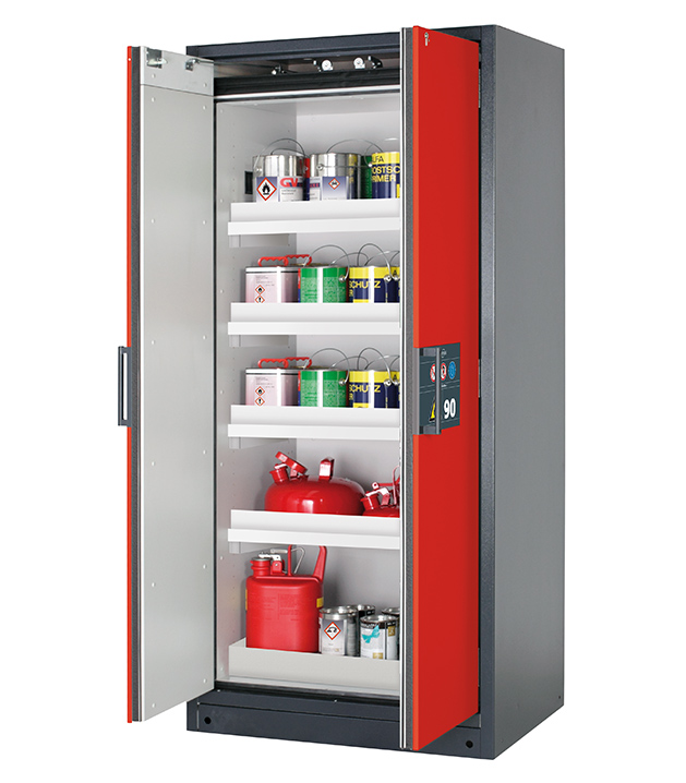 Bitte beachten Sie die jeweils gültigen, nationalen Regeln und Vorschriften zur Lagerung von Gefahrstoffen bei der Konfiguration Ihres Produktes. Sollten Sie unsicher sein, helfen Ihnen die asecos Experten gerne weiter.