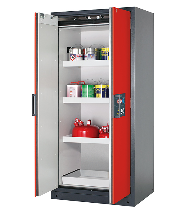 Bitte beachten Sie die jeweils gültigen, nationalen Regeln und Vorschriften zur Lagerung von Gefahrstoffen bei der Konfiguration Ihres Produktes. Sollten Sie unsicher sein, helfen Ihnen die asecos Experten gerne weiter.