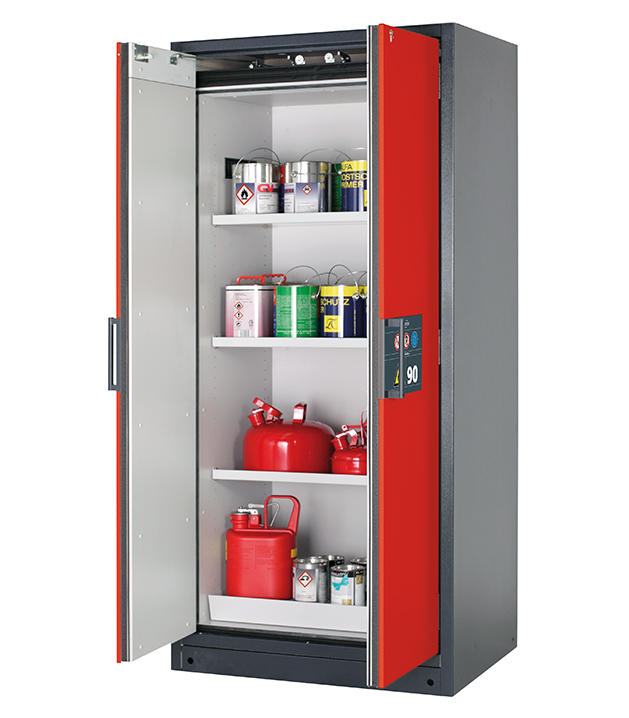 Bitte beachten Sie die jeweils gültigen, nationalen Regeln und Vorschriften zur Lagerung von Gefahrstoffen bei der Konfiguration Ihres Produktes. Sollten Sie unsicher sein, helfen Ihnen die asecos Experten gerne weiter.