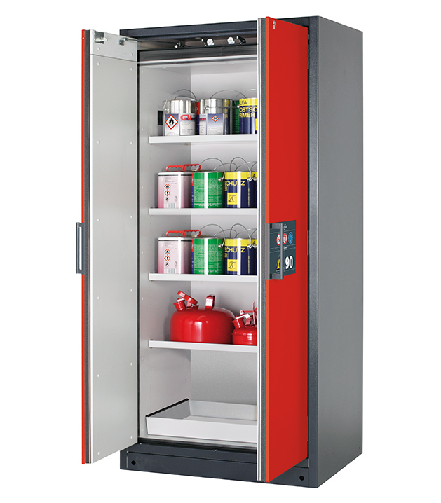 Bitte beachten Sie die jeweils gültigen, nationalen Regeln und Vorschriften zur Lagerung von Gefahrstoffen bei der Konfiguration Ihres Produktes. Sollten Sie unsicher sein, helfen Ihnen die asecos Experten gerne weiter.