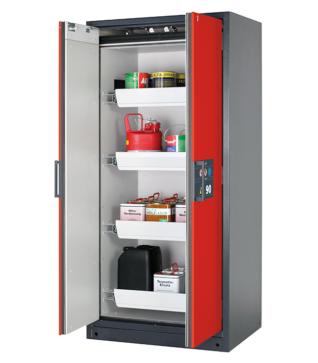 Bitte beachten Sie die jeweils gültigen, nationalen Regeln und Vorschriften zur Lagerung von Gefahrstoffen bei der Konfiguration Ihres Produktes. Sollten Sie unsicher sein, helfen Ihnen die asecos Experten gerne weiter.