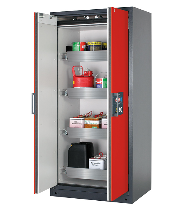Bitte beachten Sie die jeweils gültigen, nationalen Regeln und Vorschriften zur Lagerung von Gefahrstoffen bei der Konfiguration Ihres Produktes. Sollten Sie unsicher sein, helfen Ihnen die asecos Experten gerne weiter.