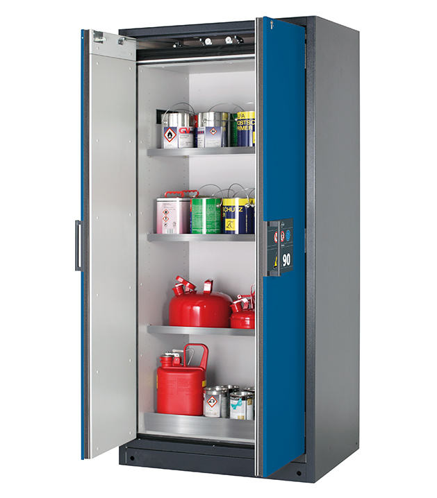 Bitte beachten Sie die jeweils gültigen, nationalen Regeln und Vorschriften zur Lagerung von Gefahrstoffen bei der Konfiguration Ihres Produktes. Sollten Sie unsicher sein, helfen Ihnen die asecos Experten gerne weiter.