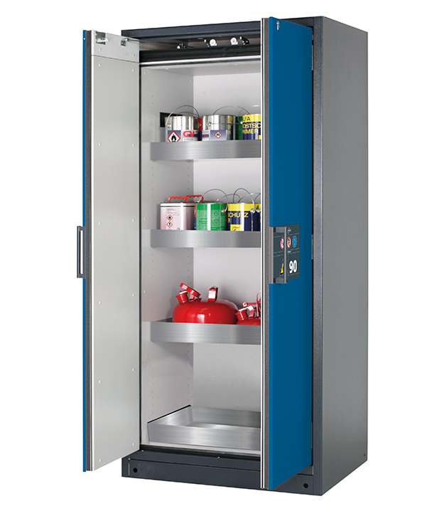 Bitte beachten Sie die jeweils gültigen, nationalen Regeln und Vorschriften zur Lagerung von Gefahrstoffen bei der Konfiguration Ihres Produktes. Sollten Sie unsicher sein, helfen Ihnen die asecos Experten gerne weiter.