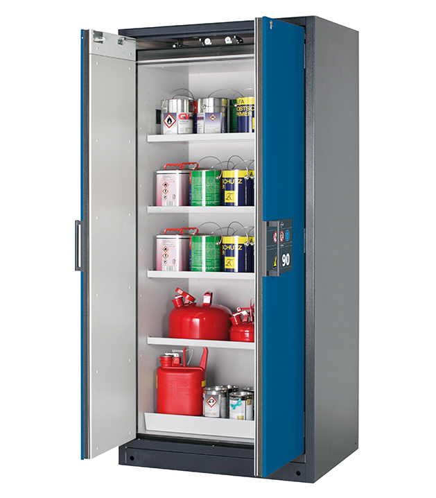 Bitte beachten Sie die jeweils gültigen, nationalen Regeln und Vorschriften zur Lagerung von Gefahrstoffen bei der Konfiguration Ihres Produktes. Sollten Sie unsicher sein, helfen Ihnen die asecos Experten gerne weiter.