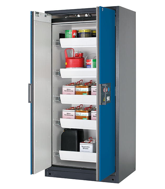 Bitte beachten Sie die jeweils gültigen, nationalen Regeln und Vorschriften zur Lagerung von Gefahrstoffen bei der Konfiguration Ihres Produktes. Sollten Sie unsicher sein, helfen Ihnen die asecos Experten gerne weiter.