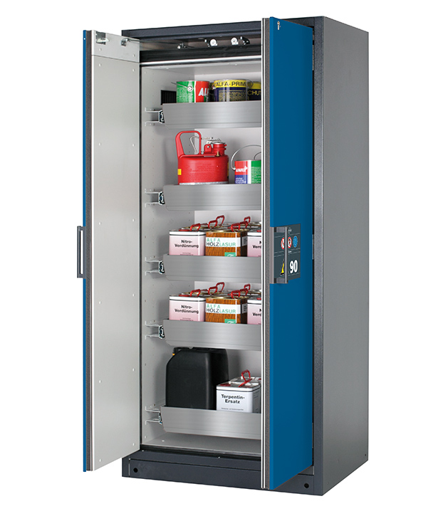 Bitte beachten Sie die jeweils gültigen, nationalen Regeln und Vorschriften zur Lagerung von Gefahrstoffen bei der Konfiguration Ihres Produktes. Sollten Sie unsicher sein, helfen Ihnen die asecos Experten gerne weiter.