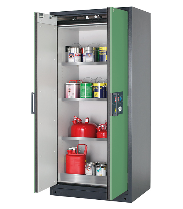 Bitte beachten Sie die jeweils gültigen, nationalen Regeln und Vorschriften zur Lagerung von Gefahrstoffen bei der Konfiguration Ihres Produktes. Sollten Sie unsicher sein, helfen Ihnen die asecos Experten gerne weiter.