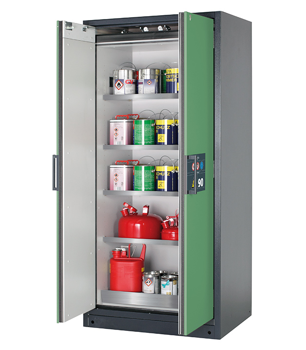 Bitte beachten Sie die jeweils gültigen, nationalen Regeln und Vorschriften zur Lagerung von Gefahrstoffen bei der Konfiguration Ihres Produktes. Sollten Sie unsicher sein, helfen Ihnen die asecos Experten gerne weiter.