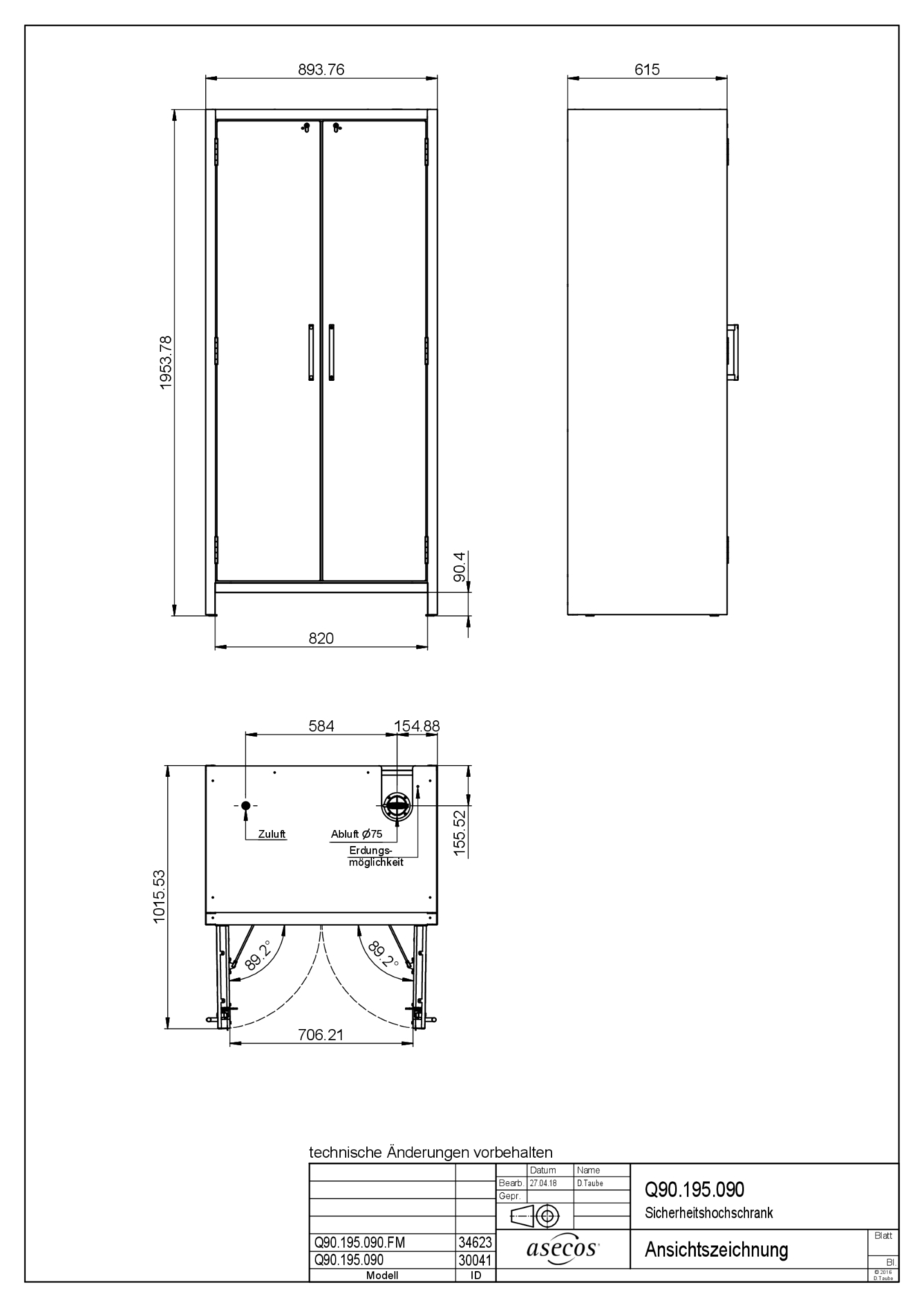 | Maße B x T x H außen | 893 x 615 x 1953 mm |