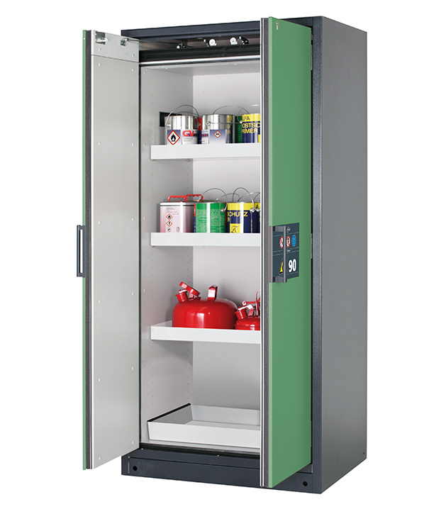 Bitte beachten Sie die jeweils gültigen, nationalen Regeln und Vorschriften zur Lagerung von Gefahrstoffen bei der Konfiguration Ihres Produktes. Sollten Sie unsicher sein, helfen Ihnen die asecos Experten gerne weiter.