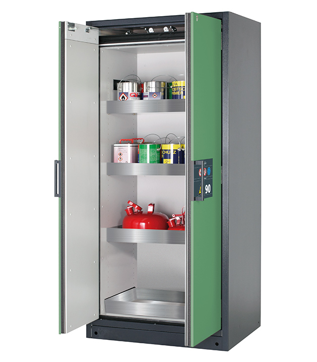 Bitte beachten Sie die jeweils gültigen, nationalen Regeln und Vorschriften zur Lagerung von Gefahrstoffen bei der Konfiguration Ihres Produktes. Sollten Sie unsicher sein, helfen Ihnen die asecos Experten gerne weiter.