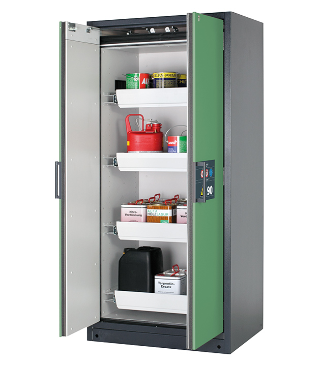 Bitte beachten Sie die jeweils gültigen, nationalen Regeln und Vorschriften zur Lagerung von Gefahrstoffen bei der Konfiguration Ihres Produktes. Sollten Sie unsicher sein, helfen Ihnen die asecos Experten gerne weiter.