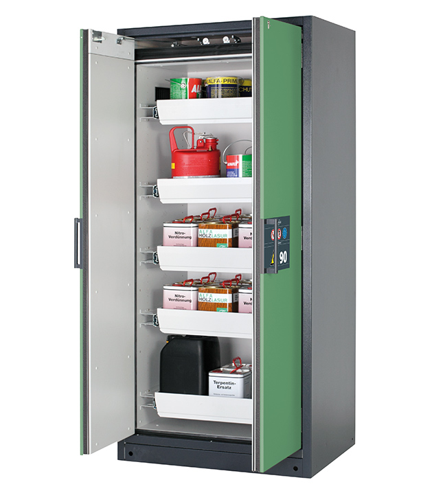Bitte beachten Sie die jeweils gültigen, nationalen Regeln und Vorschriften zur Lagerung von Gefahrstoffen bei der Konfiguration Ihres Produktes. Sollten Sie unsicher sein, helfen Ihnen die asecos Experten gerne weiter.