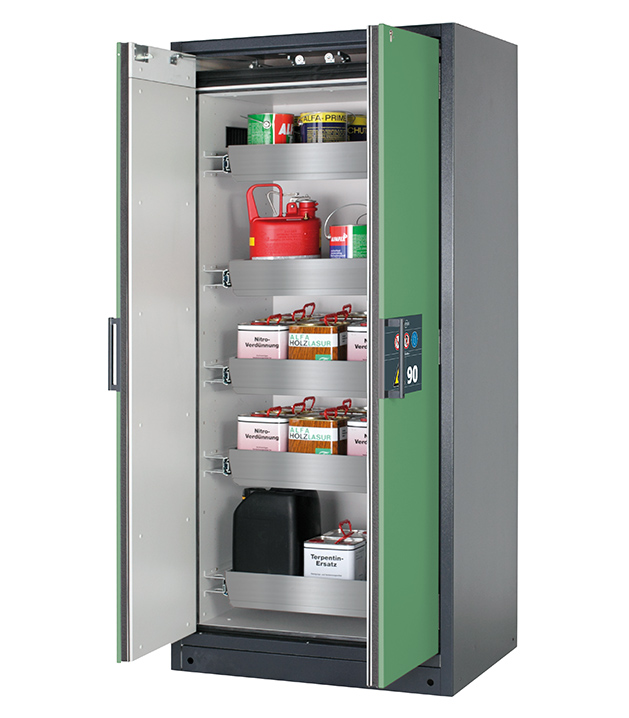 Bitte beachten Sie die jeweils gültigen, nationalen Regeln und Vorschriften zur Lagerung von Gefahrstoffen bei der Konfiguration Ihres Produktes. Sollten Sie unsicher sein, helfen Ihnen die asecos Experten gerne weiter.