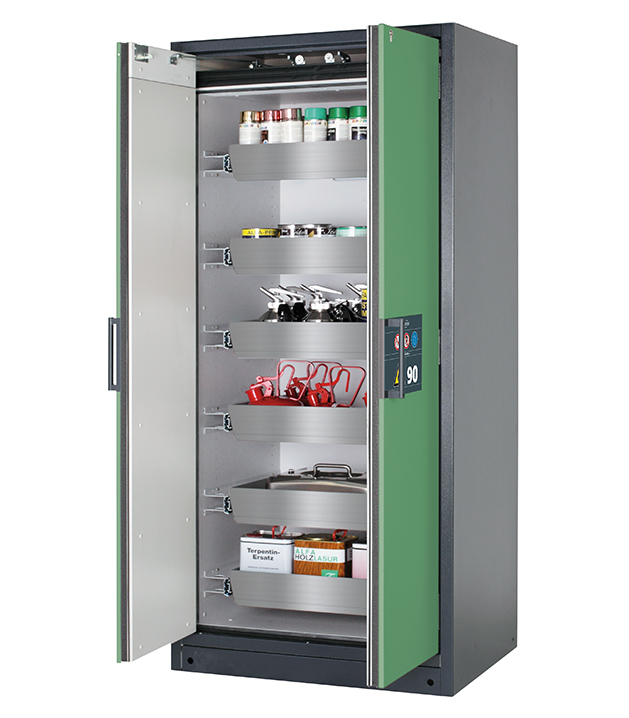 Bitte beachten Sie die jeweils gültigen, nationalen Regeln und Vorschriften zur Lagerung von Gefahrstoffen bei der Konfiguration Ihres Produktes. Sollten Sie unsicher sein, helfen Ihnen die asecos Experten gerne weiter.