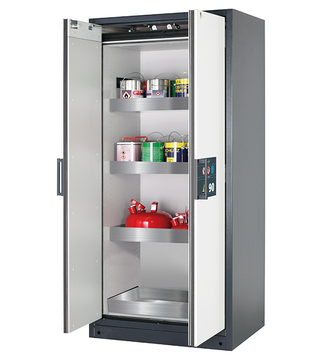 Bitte beachten Sie die jeweils gültigen, nationalen Regeln und Vorschriften zur Lagerung von Gefahrstoffen bei der Konfiguration Ihres Produktes. Sollten Sie unsicher sein, helfen Ihnen die asecos Experten gerne weiter.