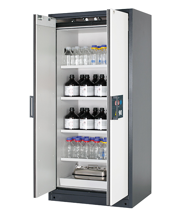 Bitte beachten Sie die jeweils gültigen, nationalen Regeln und Vorschriften zur Lagerung von Gefahrstoffen bei der Konfiguration Ihres Produktes. Sollten Sie unsicher sein, helfen Ihnen die asecos Experten gerne weiter.