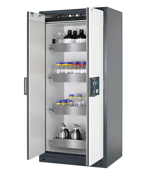 Bitte beachten Sie die jeweils gültigen, nationalen Regeln und Vorschriften zur Lagerung von Gefahrstoffen bei der Konfiguration Ihres Produktes. Sollten Sie unsicher sein, helfen Ihnen die asecos Experten gerne weiter.