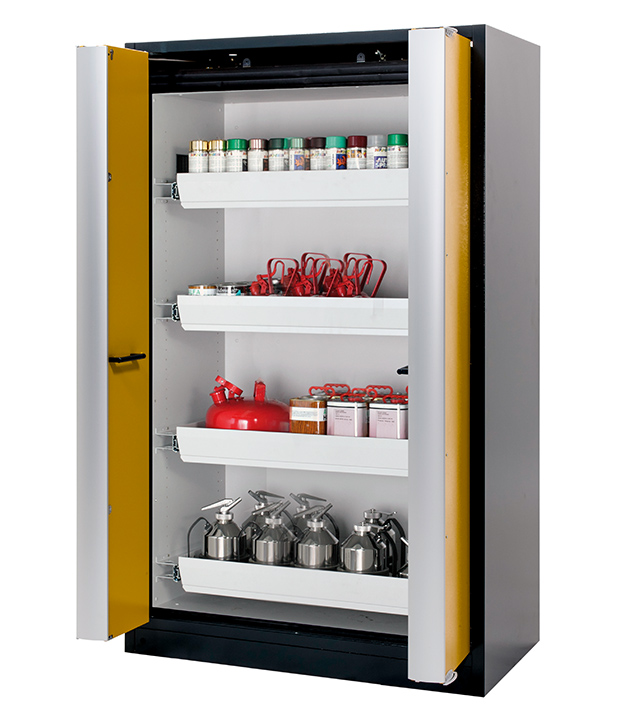 Bitte beachten Sie die jeweils gültigen, nationalen Regeln und Vorschriften zur Lagerung von Gefahrstoffen bei der Konfiguration Ihres Produktes. Sollten Sie unsicher sein, helfen Ihnen die asecos Experten gerne weiter.